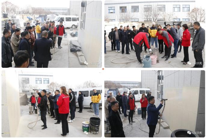 培訓(xùn)現(xiàn)場(chǎng),七彩貝殼集團(tuán)以集團(tuán)的SG-6人工智能噴涂機(jī)、SG-9大流量砂漿噴涂機(jī)為例,向現(xiàn)場(chǎng)的工人進(jìn)行了真石漆、保溫顆粒的噴涂演示,并就機(jī)器的基本操作問(wèn)題進(jìn)行了詳細(xì)的講解,現(xiàn)場(chǎng)的工人紛紛進(jìn)行現(xiàn)場(chǎng)操作,并對(duì)機(jī)器的噴涂效率、機(jī)器的智能化水平給予了充分肯定。