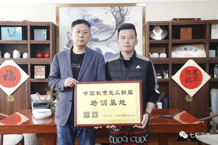 培訓(xùn)結(jié)束后,七彩貝殼香港集團(tuán)有限公司總經(jīng)理郭成為濰坊佳多麗建設(shè)工程配套有限公司進(jìn)行授牌,授予佳多麗公司“中國(guó)機(jī)噴施工聯(lián)盟培訓(xùn)基地”。